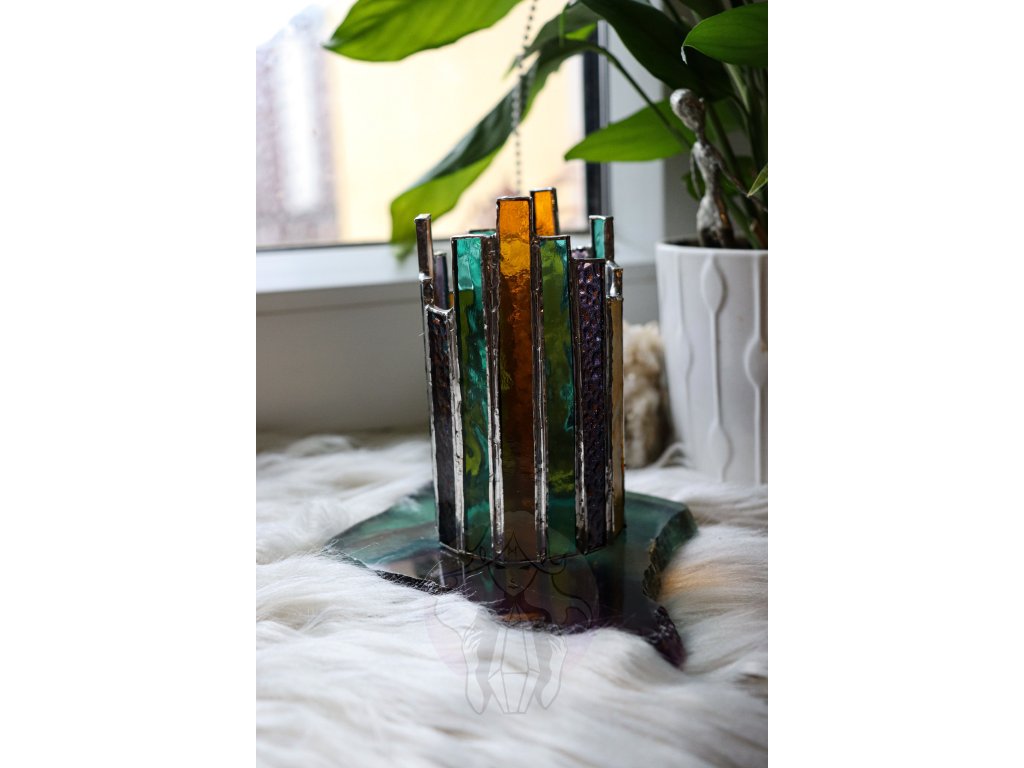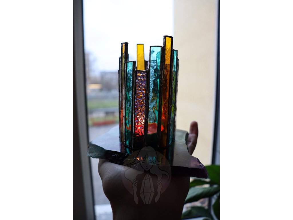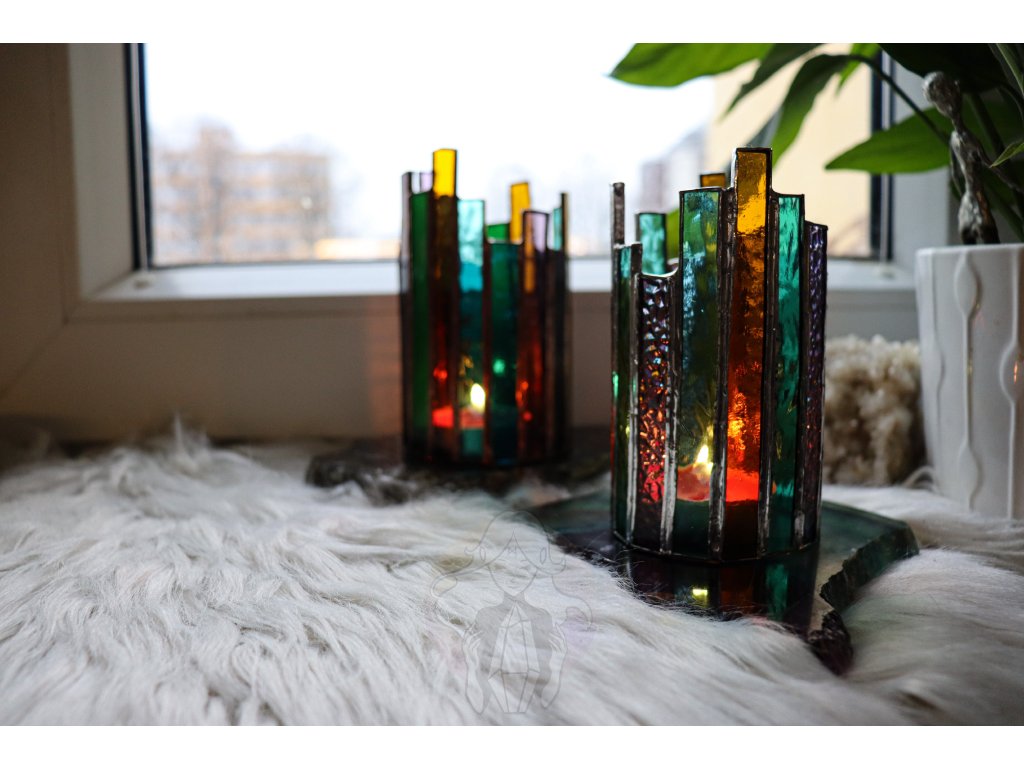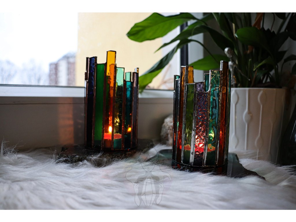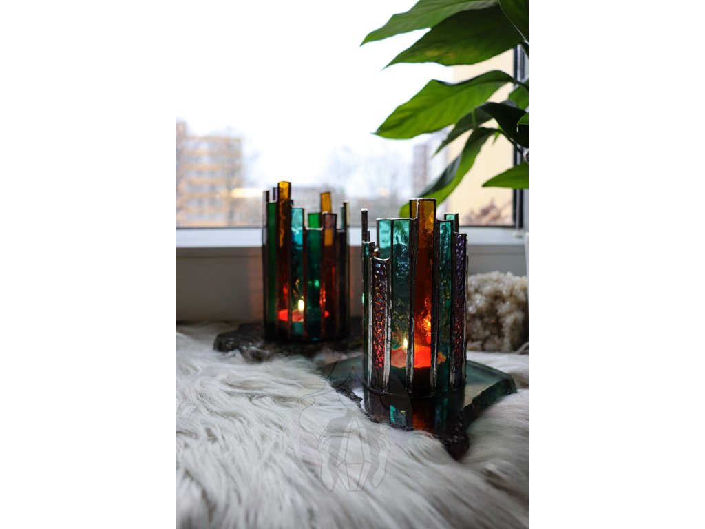 Barevný skleněný svícen vdechne do vašeho domova hřejinou a barevnou atmosféru, ať už jej postavíte kamkoliv.